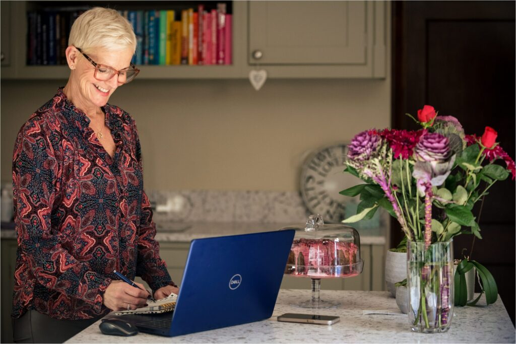 Working shot over a shoulder showing journalling during personal branding shoot
